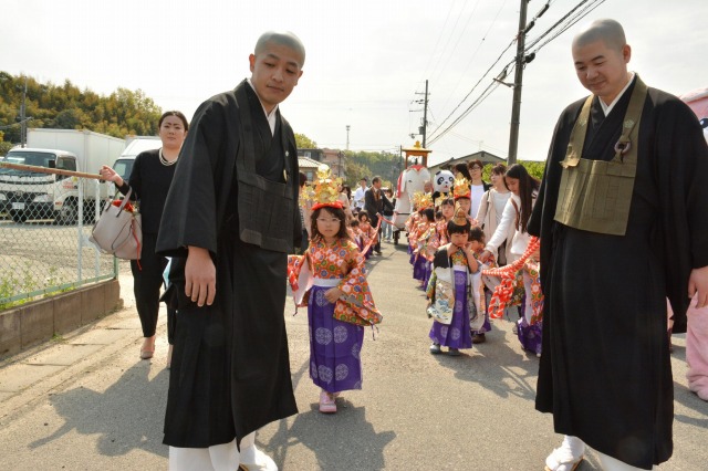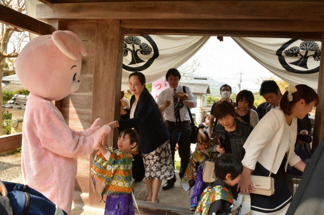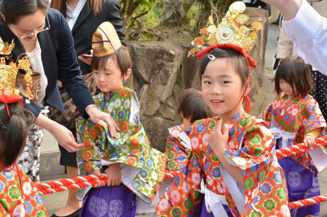 地域のお祭りでお稚児さんや地域の子供たちでにぎわいます。